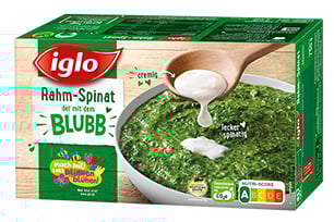Der CO2e-Fußabdruck von 100 g iglo BLUBB-Rahm-Spinat, die in Deutschland konsumiert werden, beträgt