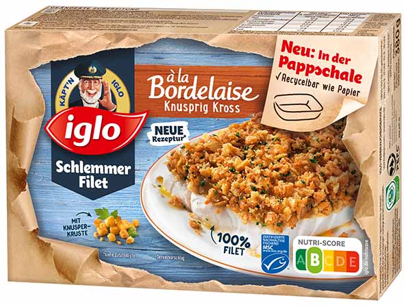 Pünktlich zur Grünen Woche in Berlin bringt iglo eine nachhaltige Verpackungsinnovation in die Tiefkühlregale: Zum 50. Geburtstag des iglo Klassikers Schlemmer Filet werden die vielfältigen Varianten ab sofort in einer hitzebeständigen Pappschale angeboten. Mehr Infos zur Unterscheidung der verschiedenen Schalen können finden Sie hier.